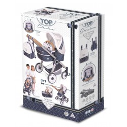 Le kit est composé de: Poussette piur Poupées Pliante 3x1 de la ligne Top Collection avec oreiller et sac à dos assortis.