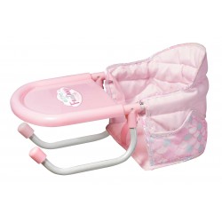 Une chaise haute portable pour pouvoir nourrir votre bébé n'importe où. L'article a un plateau, une ceinture de sécurité et des accessoires comme des couverts, une assiette, un biberon, un porte-bébé avec des poignées rembourrées et réglables pour rendre le transport de vos poupées très confortable. Et un sac à dos de sac de type et un pendentif sous forme d'étoile où vous pourrez ranger vos jouets.